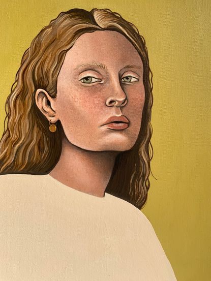 Overall, I am so happy with how Aoife has turned out. She feels different, new, fresh, exciting and playful. There is a real strength to her and I feel like I've done a good job of being open to new, accidental, stylistic features but still allowed myself to paint a rich, detailed portrait.